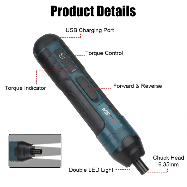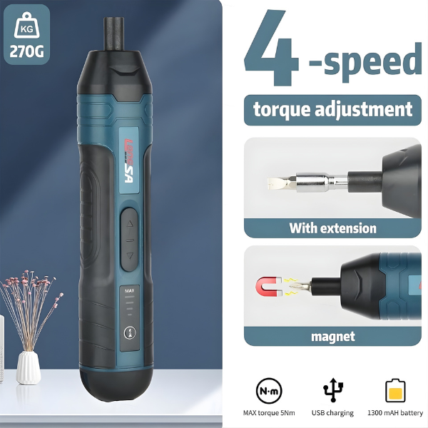 This cordless electric screwdriver set is designed for convenience, precision, and everyday use. With one-hand operation, adjustable torque, and a compact design, it’s ideal for home, office, and light electrical work.
