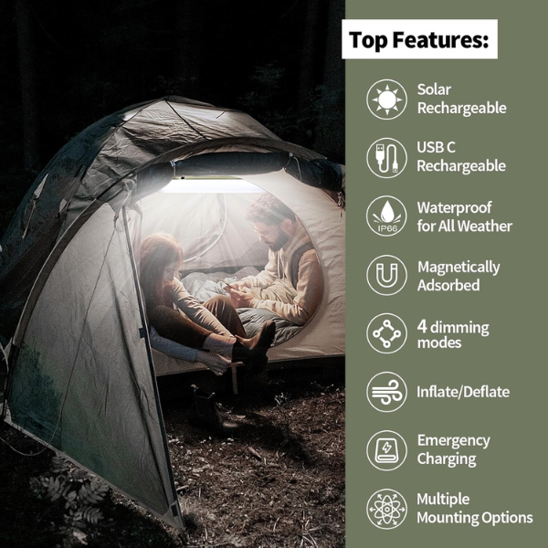 Lightweight, durable, and designed for adventure, the A86 Inflatable LED Tube Light is the perfect lighting companion for camping, emergencies, night activities, and outdoor exploration. With dual charging options, waterproof protection, and long-lasting battery life, it delivers reliable illumination wherever you go.