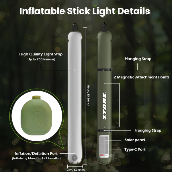 Inflatable LED Tube Light – USB & Solar Powered (Model A86)