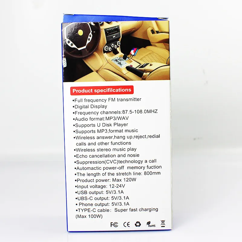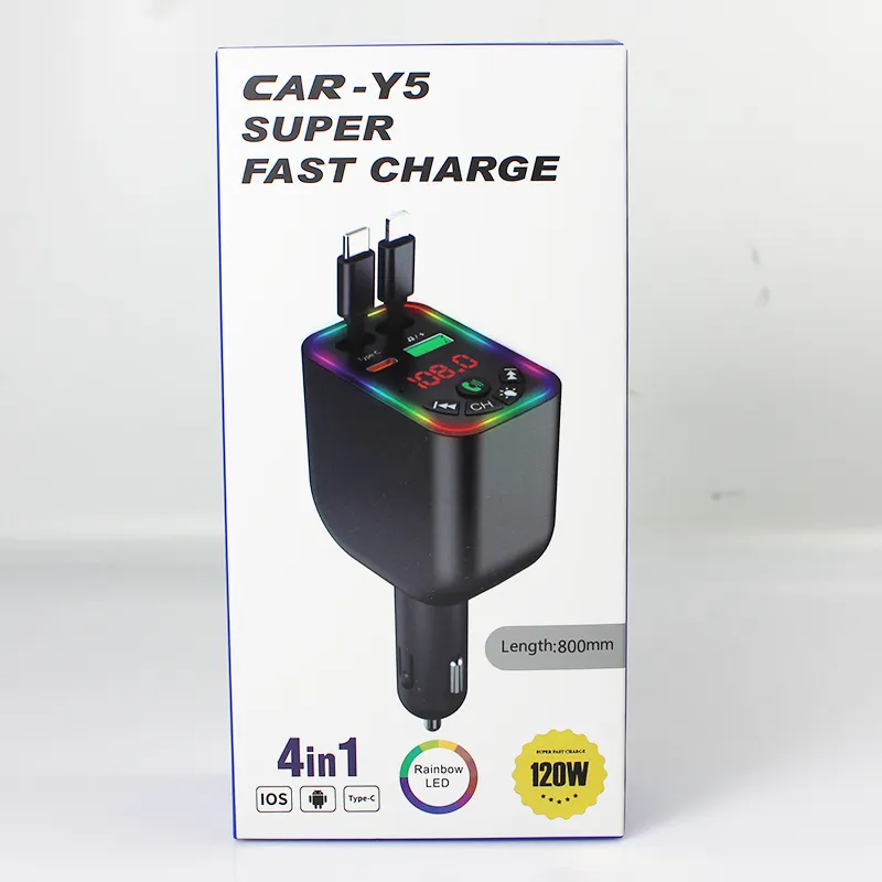 120W 4 IN 1 Retractable Car Charger FM Transmitter Super Fast Charging USB C