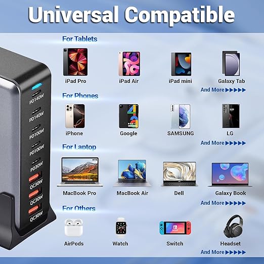 Charges phones, laptops, tablets, and more – all at the same time.