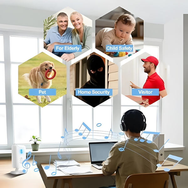 This wireless, DIY-installation door chime is compact, lightweight, and easy to install. Made from durable plastic, it is suitable for indoor use and can be wall-mounted or placed on a surface as needed. The motion sensor detects movement and triggers a clear alert sound, ensuring you never miss a visitor.