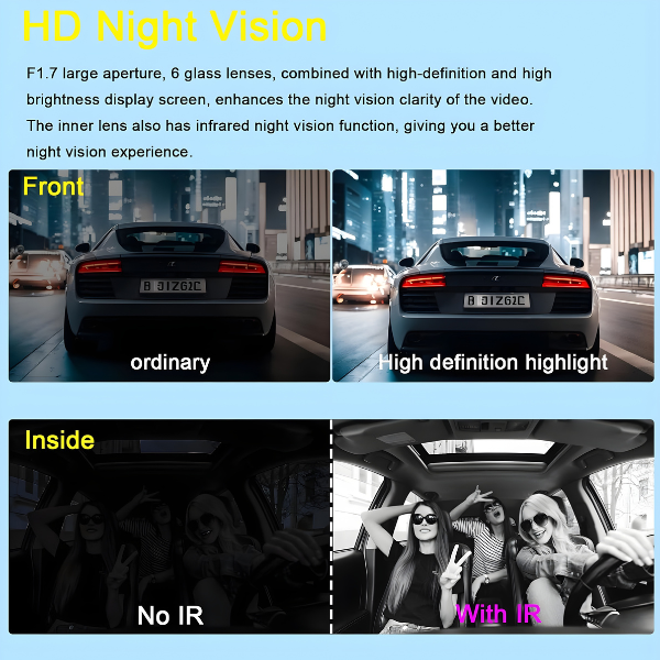 • Wide-Angle Lens: 170° A+ grade high-resolution ultra-wide angle lens for broader road coverage.