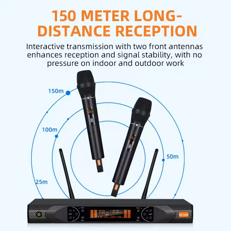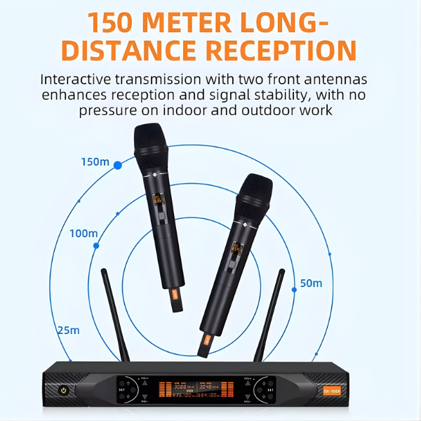 2. 150 meters transmission distance, anti-interference and anti-screaming, for multi-code machine, high sensitivity pickup, LCD display;